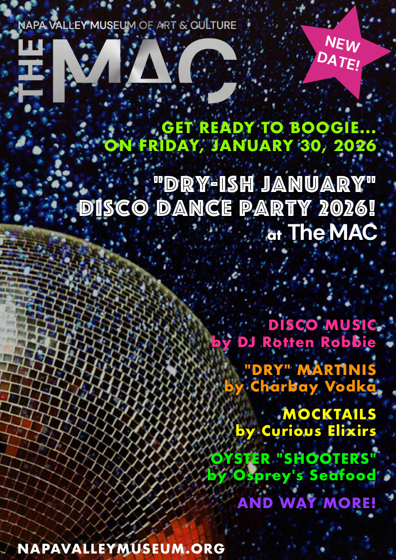 The Napa Valley Museum of Art & Culture (the MAC) announces tickets on sale for its “Dry-ish January” Disco Dance Party 2026, to be held at The MAC in St Helena on Friday, January 30, 2026, from 7–10 PM.